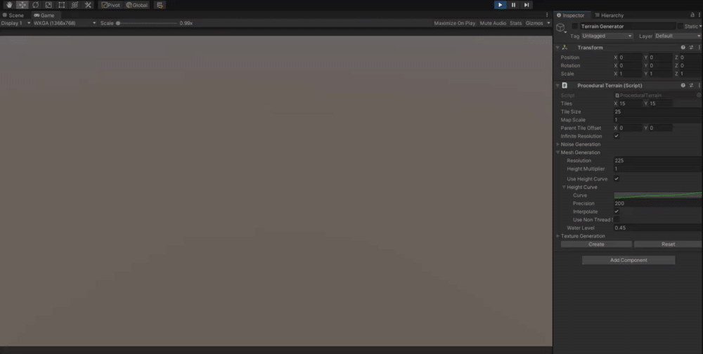 Terrain can be generated in both editmode and in game time fully asynchronously using C# threads or untiy job system.